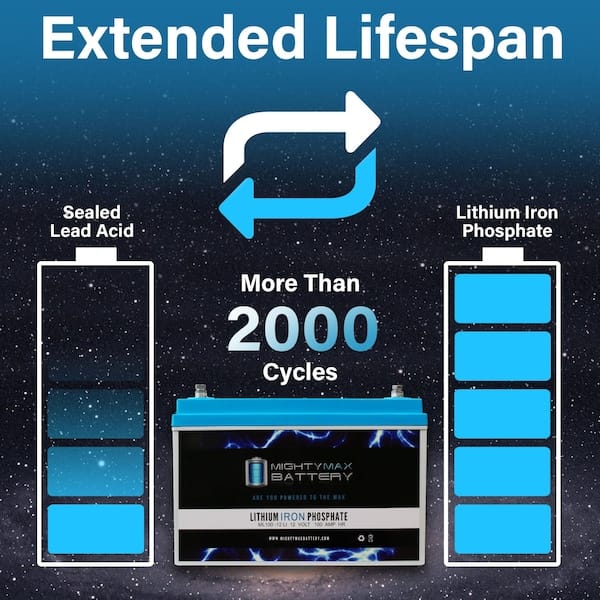 Invest in power with the Mighty Max 12V 100ah Lithium Iron Phosphate Battery. The ML100-12LI will take your deep cycle battery experience to a whole new horizon. Manufactured with the highest quality components and the customers safety in mind, this battery contains a battery management system (BMS). BMS provides all kinds of protection for the battery and customer, equipped with Over charge and short circuit protection. Weighing only 30 lbs. and being a direct drop in replacement for its sister sealed lead acid and Gel batteries which weigh a hefty 60 lbs. Lighter, stronger and longer life span with 2500 cycles makes this the ideal battery for all your Deep Cycle applications such as, Solar / wind energy systems, Off Grid systems, RV, Camping, Backup power systems and much more.