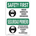 OSHA Sign, Wear Goggles When Grinding Bilingual, 18in X 12in Aluminum, 18″ W, 12″ H, Landscape